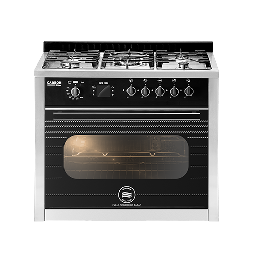 Grand Carbon Fiber Gas Cooker From Unionaire , 5 Burners, Stainless Steel – C69SSGC383ICPS2FGCF2WAL
